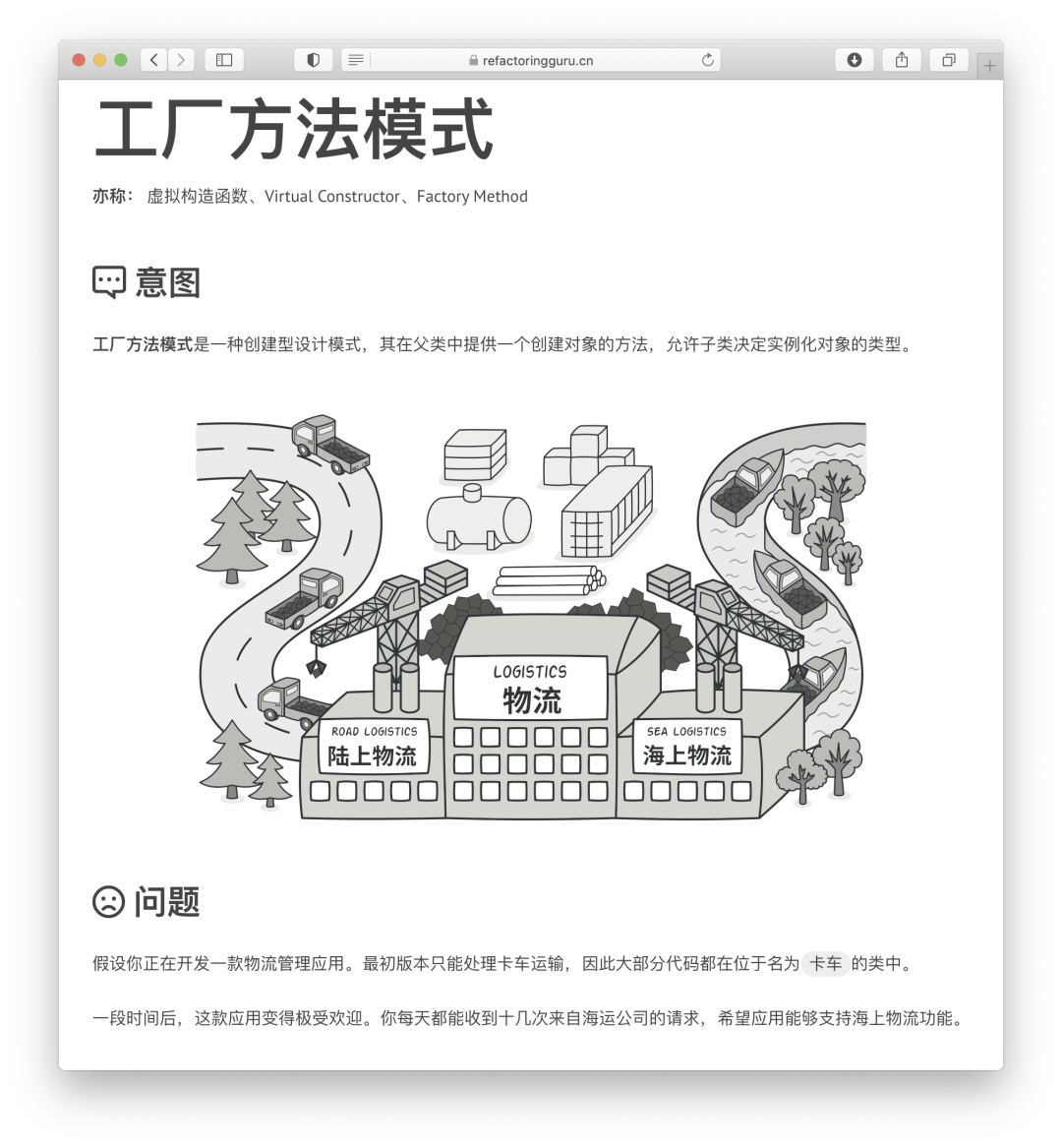 每个模式都会对应一篇图文并茂的文章,阅读起来就好像在读绘本一样,生动有趣,令人印象深刻,学起来就没有半点枯燥的感觉。来看一下工厂方法模式的一部分内容截图,这图片的质量,确实高啊,不服不行!
