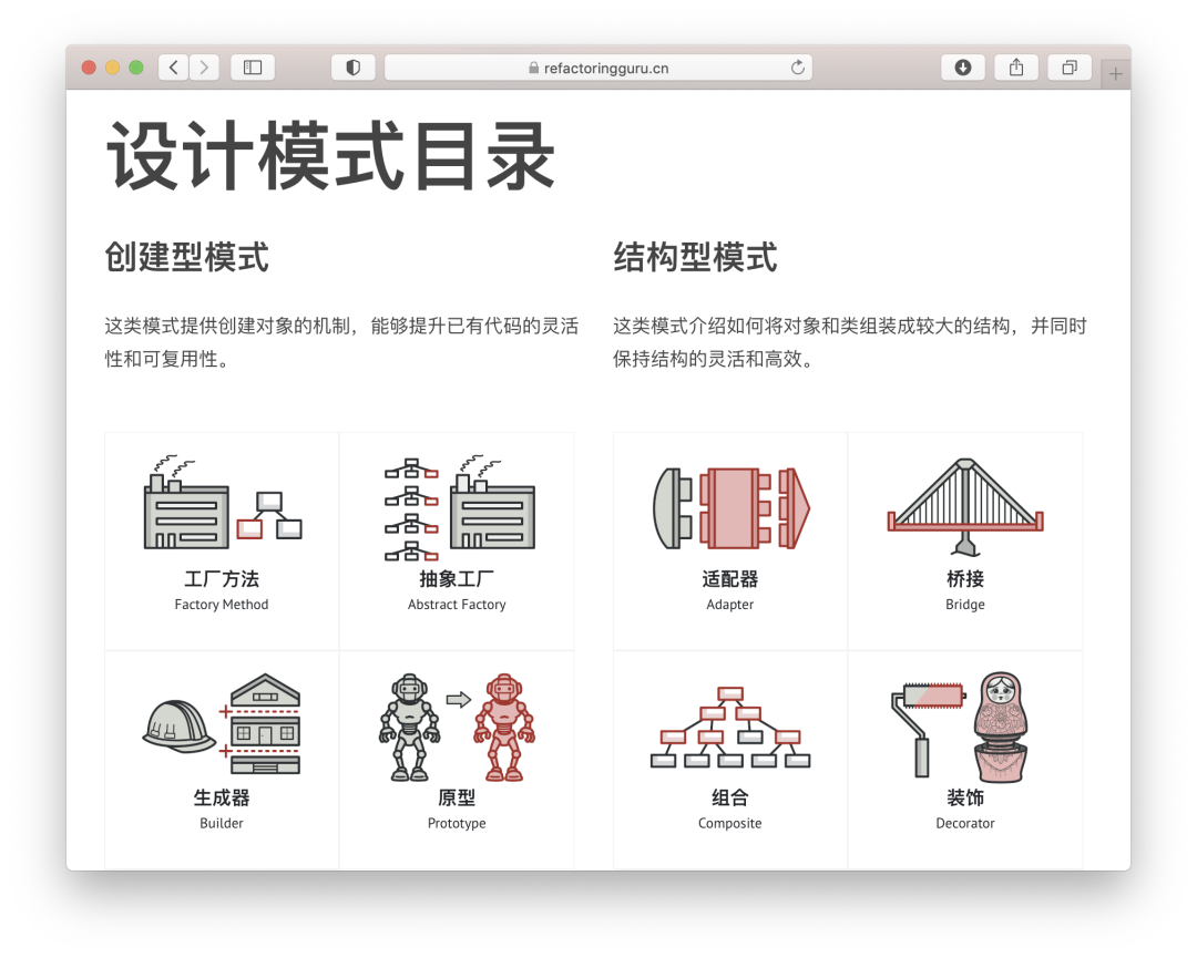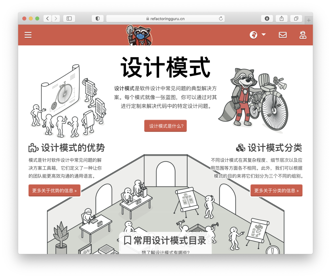 这虽然是一个国外的网站,却神奇的实现了中文化国际化,爱了爱了,无情地爱了。据作者说,他建站的初衷就是为了帮助我们程序员,快速地掌握设计模式,但把网站做到这种用心的程度,我只能情不自禁地点赞了!