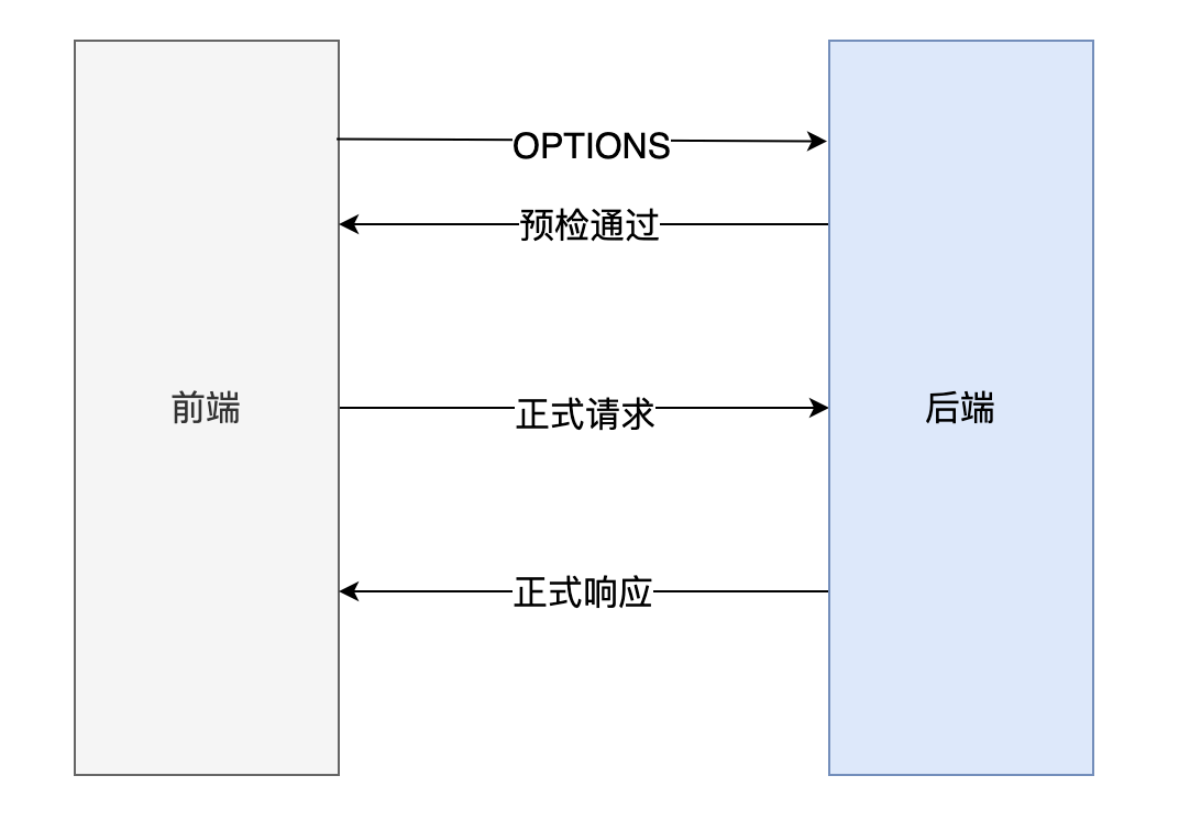 非简单请求在正式通信之前,会增加一次 HTTP 查询请求,称为“预检”请求。预检请求通过后,才会返回正常的响应内容。