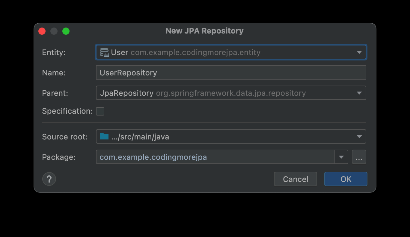 首先是 UserRepository,直接用 JPA Buddy 插件: