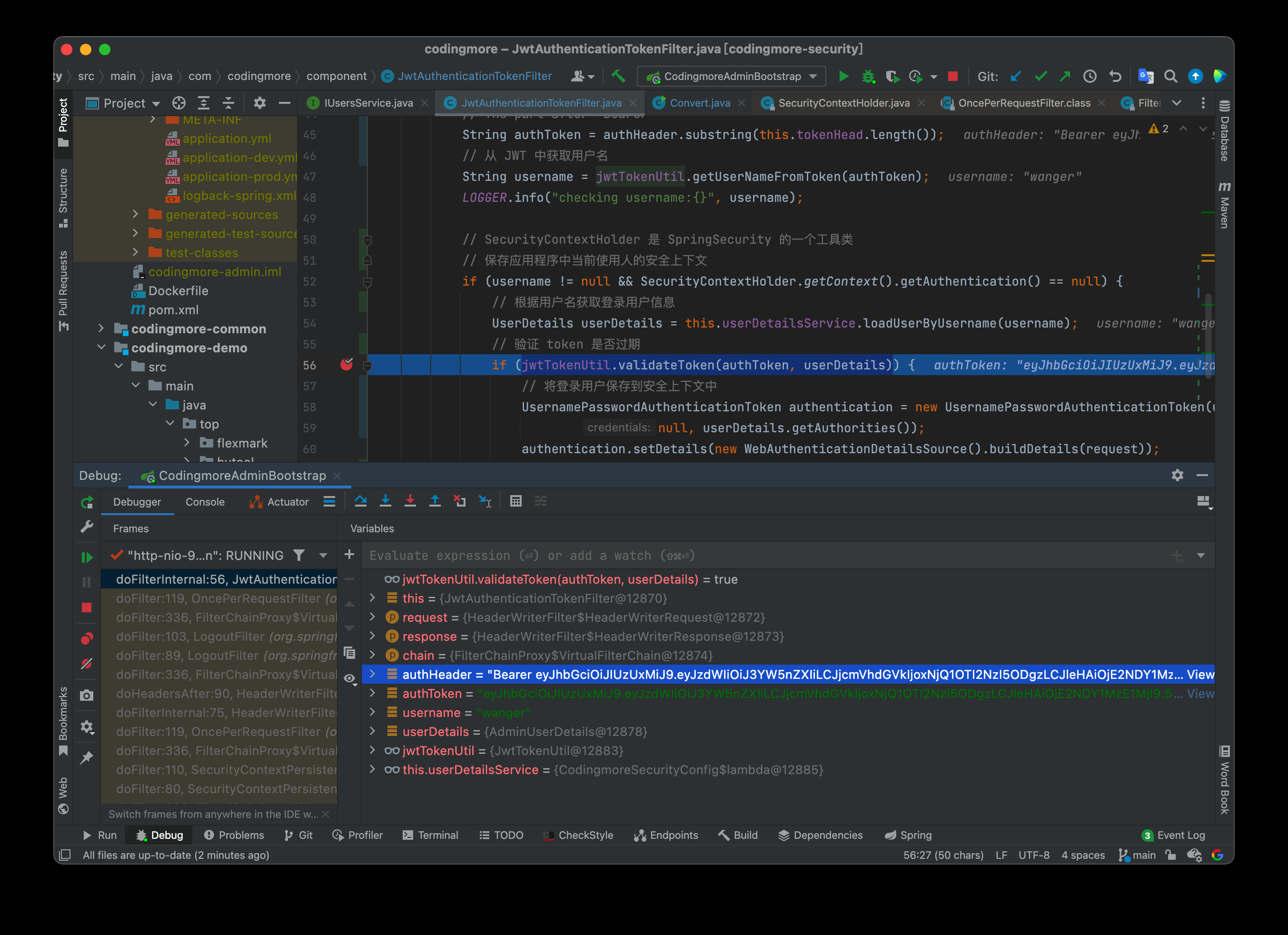 if (jwtTokenUtil.validateToken(authToken, userDetails)) {