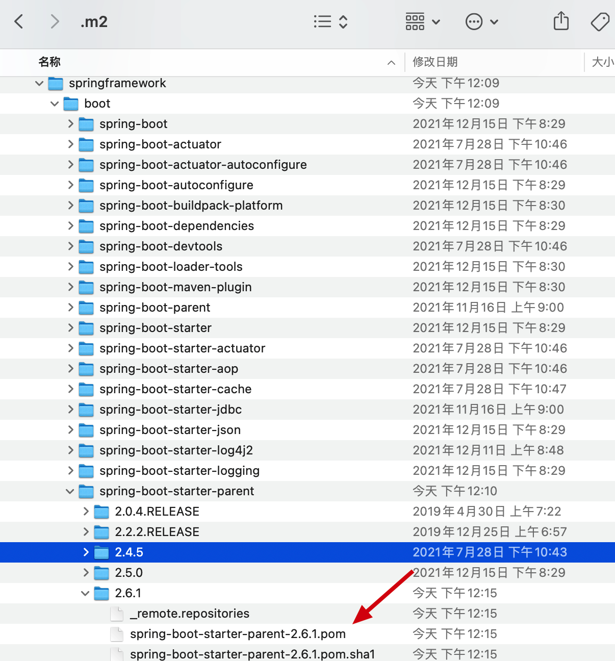 顺藤摸瓜,根据 parent 的 groupId、artifactId、version 可以锁定 spring-boot-starter-parent.pom 文件的位置。