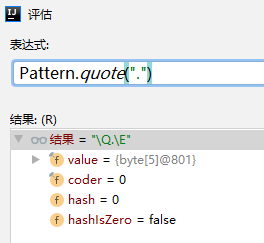 cmower.split("[.]");除此之外, 还可以使用 Pattern 类的 quote() 方法来包裹英文逗点“.”,该方法会返回一个使用 \Q\E 包裹的字符串。