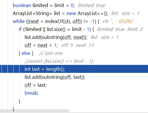 也就是说,传递 2 个参数的时候,会直接调用 substring() 进行截取,第二个分隔符后的就不再拆分了。