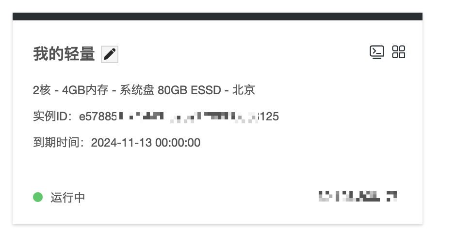 在此之前呢,我已经购买了一台阿里云的服务器,2核4G内存的轻量级云服务器。就是上次带大家白票的那波,我自己也购入了一台。