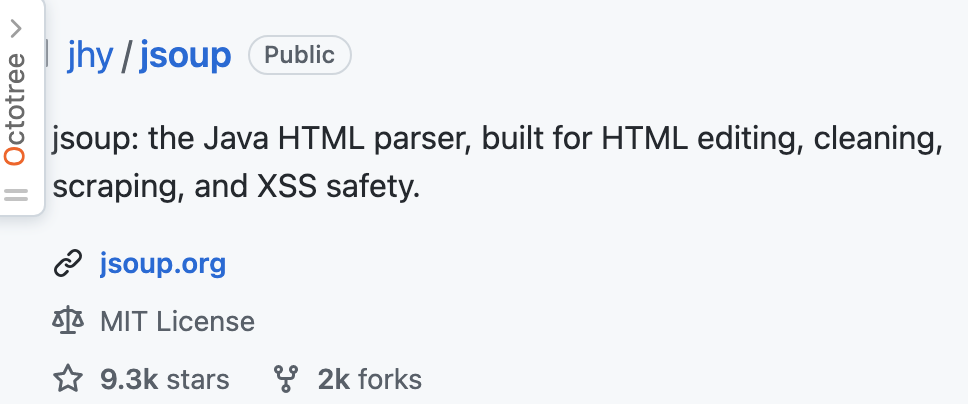 jsoup 目前在 GitHub 上已经收获 9.3k+ 的 star,可以说是非常的受欢迎了。