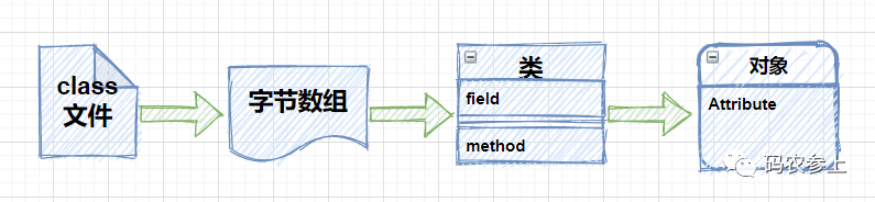 }在上面的代码中,首先读取了一个class文件并通过文件流将它转化为字节数组,之后使用defineClass方法动态的创建了一个类,并在后续完成了它的实例化工作,流程如下图所示,并且通过这种方式创建的类,会跳过 JVM 的所有安全检查。