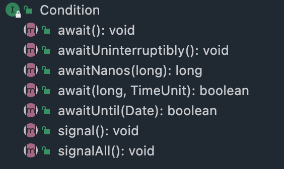 Condition 接口一共提供了以下 7 个方法: