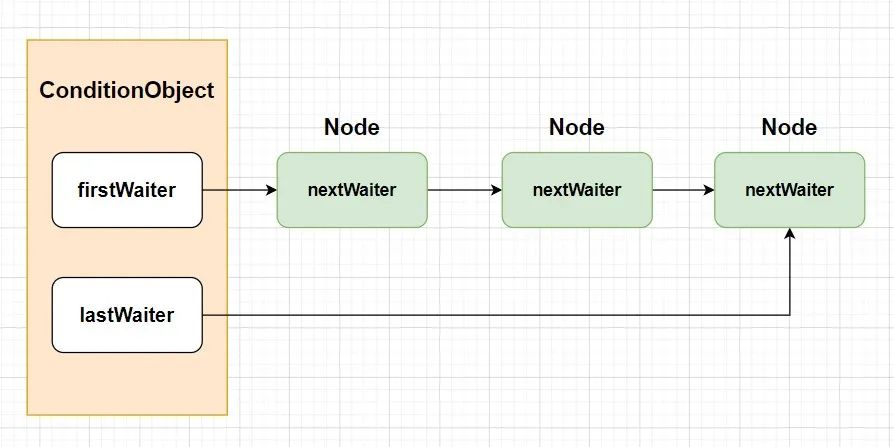 }Node 中的 nextWaiter 指向队列中的下一个节点。并且进入到等待队列的 Node 节点状态都会被设置为 CONDITION(下面的 demo 中可以看得到)。