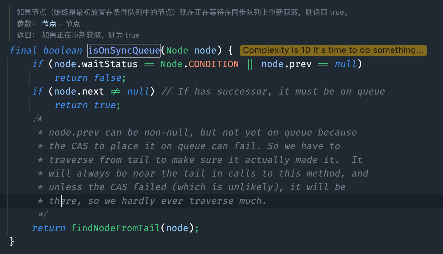 总结一下,退出 await 方法的前提条件是当前线程被中断或者调用 condition.signal 或者 condition.signalAll 使当前节点移动到同步队列后。