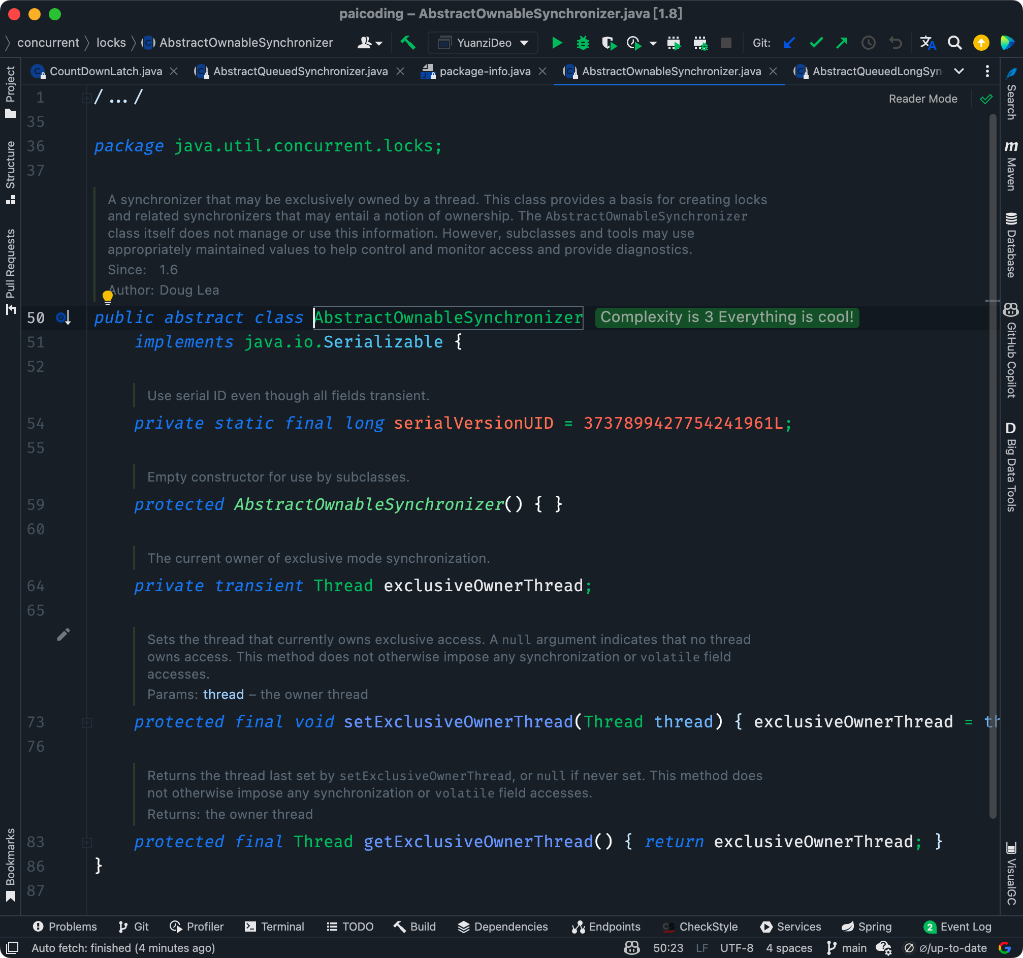 如果是一个不可重入锁,那么当前线程在调用doOthers()之前,需要将执行doSomething()时获取当前对象的锁释放掉,实际上该对象锁已经被当前线程所持有,且无法释放。所以此时会出现死锁。