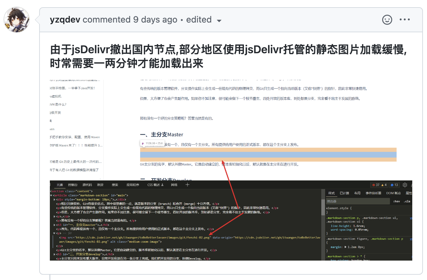但直到有一天,有个小伙伴提了一个 issue,说 jsDelivr 撤出了国内节点,导致部分图片不显示或者加载缓慢,我就坐立不安、寝食难安了!