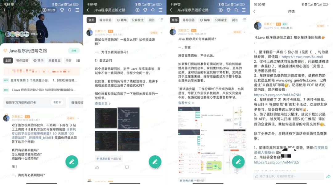 知识星球支持手机端 APP、小程序和电脑网页端,让你随时随地分享、碎片化学习,每天认真阅读 10 分钟,一年后一定会大有所获。
